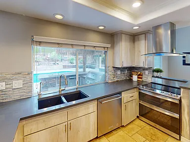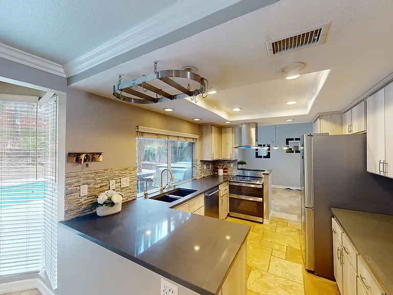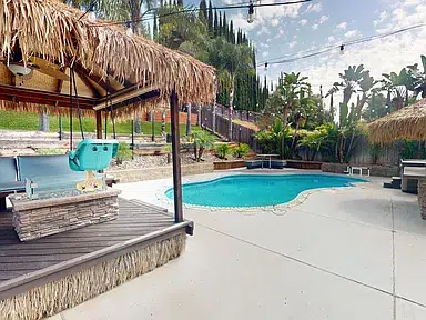 Stunning 4 bedroom with swimming pool, spa and large tropical oasis backyard complete with cabana. The large primary bedroom features walk-in closet and large shower. This cul-de-sac home is an entertainer's paradise, has 1 downstairs bedroom and has wonderful upgrades throughout including flat screen TV's included. Owner pays pool and landscape maintenance.