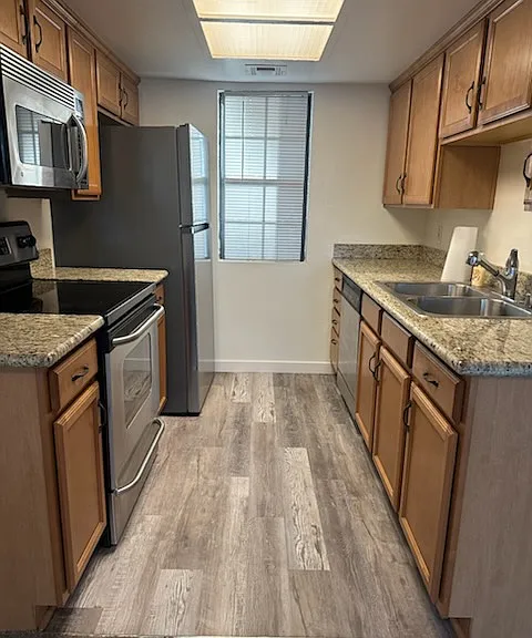 Up to 2 pets ok. This 2 bedroom unit is light & bright with many windows throughout. The home features new paint, stainless appliances, granite counters, new washer, new carpet and waterproof vinyl flooring. Enjoy your morning coffee on your peaceful, private balcony with views of trees & mountains. Your living room is spacious and features a lovely fireplace. The full size laundry closet is conveniently located in the hall near the bedrooms. Two assigned parking spaces.